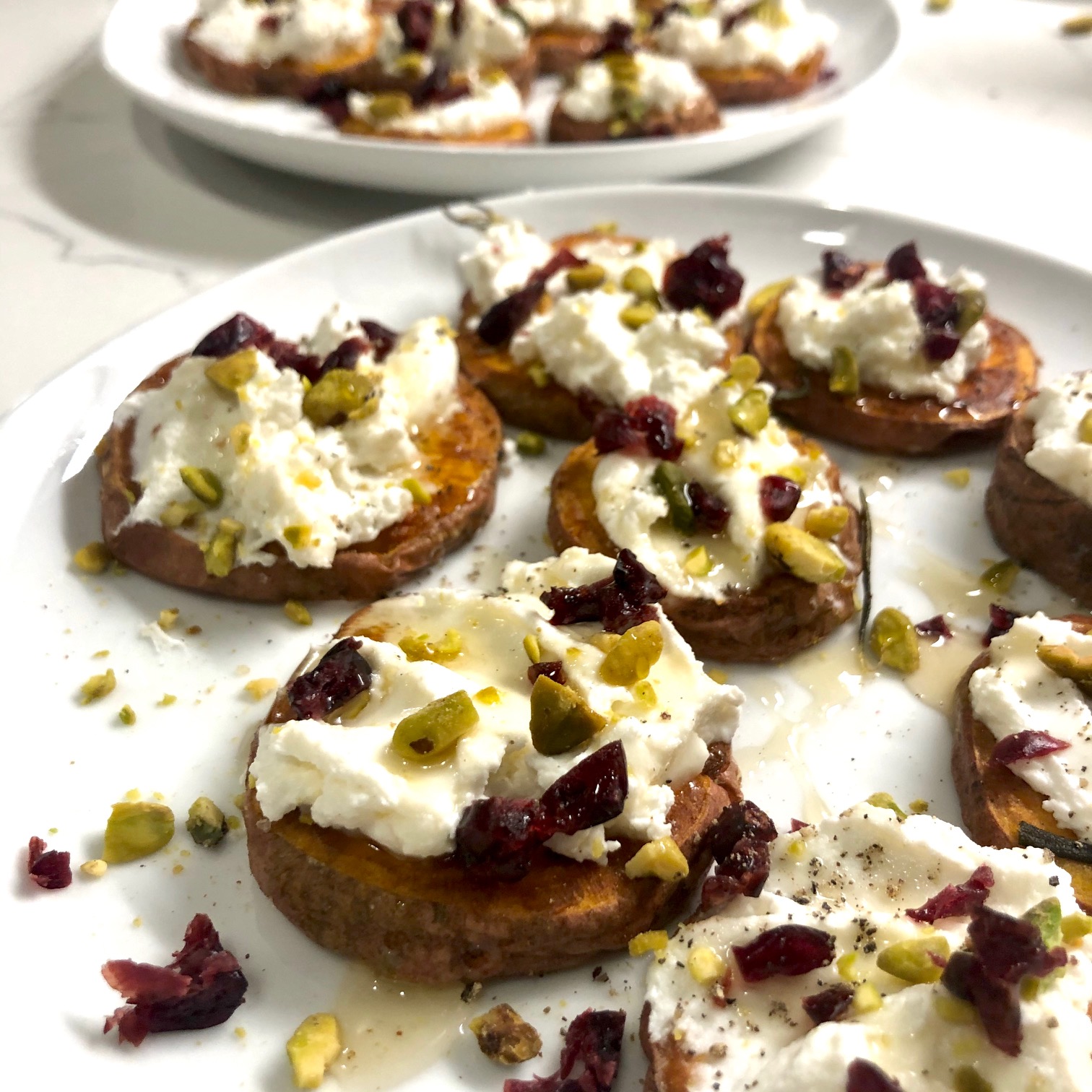 Sweet Potato Rounds with Ricotta, Cranberry, and Pistachio