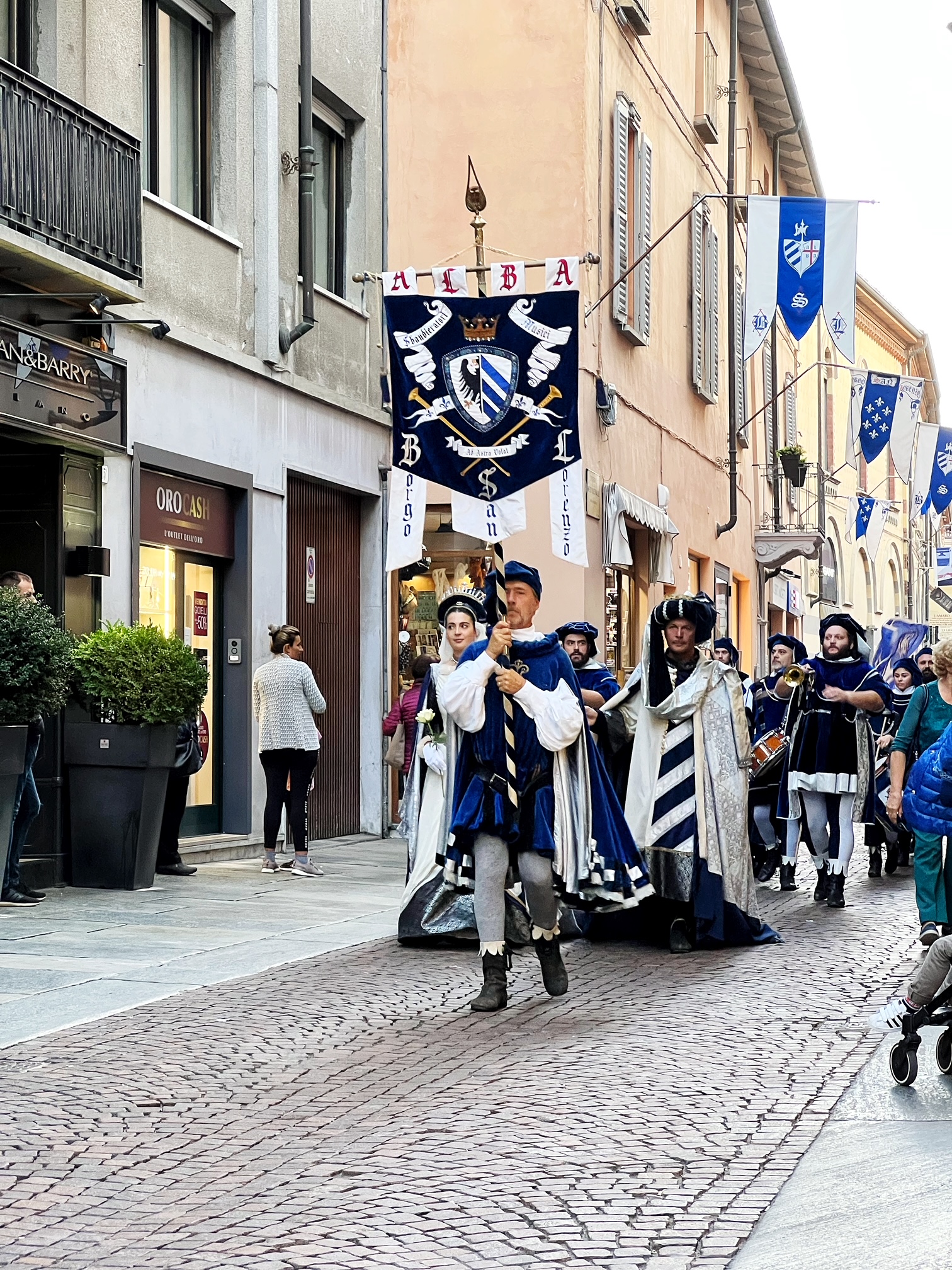 As I was enjoying my pasta and wine, I started hearing drums in the distance. Then trumpets. Then I start to see a parade heading right down the street I was eating on. Little did I know when I chose this restaurant that I’d have VIP seating for the white truffle fair’s historic parade.